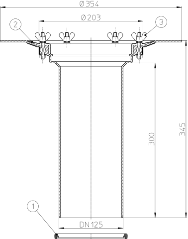 Скачать страницуНадставной элемент с обжимным фланцем из нержавеющей стали и уплотнительным резиновым кольцом, высотой 345мм.