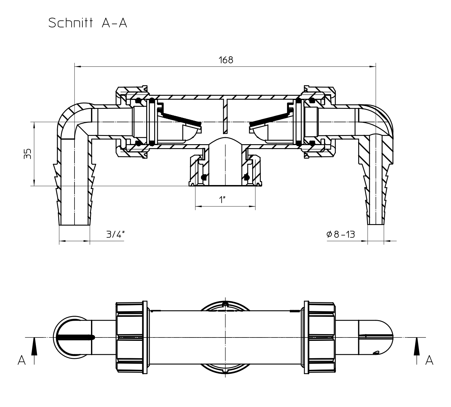 Скачать страницуСдвоенный соединительный элемент для подключения стиральной и посудомоечной машины 1 х подсоединение шланга 3/4" (d 17 - 23 мм) с обратным клапаном и 1 х подсоединение шланга (d 8 - 13 мм) с обратным клапаном