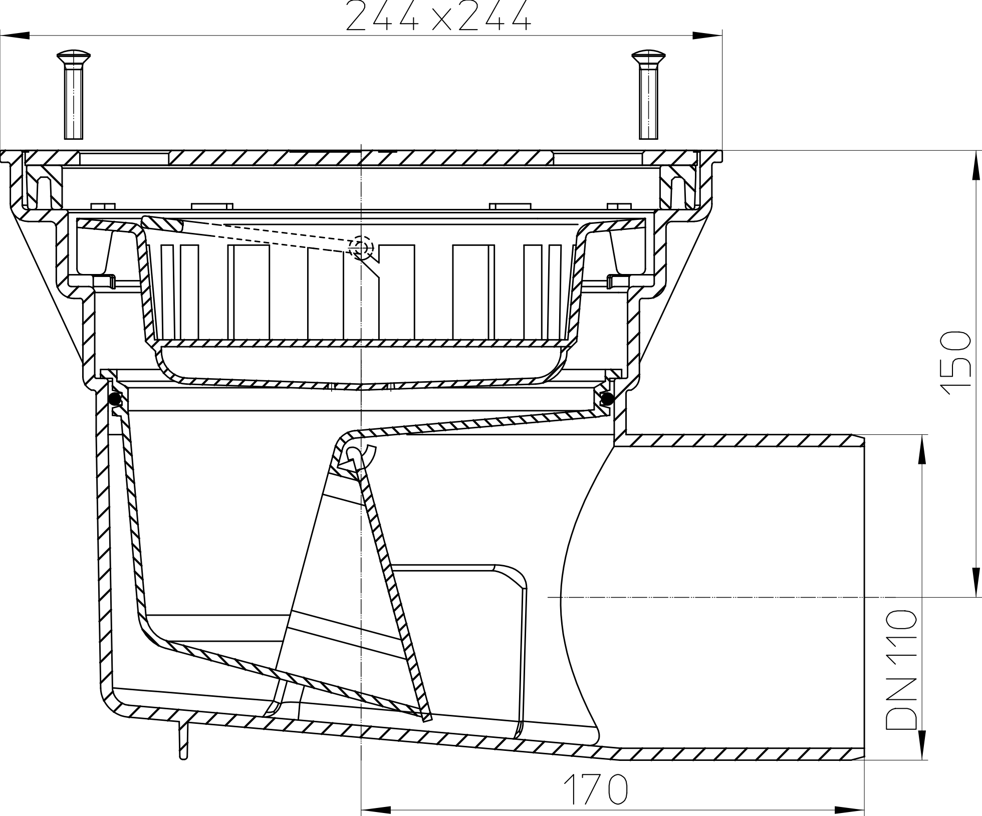 Скачать страницуТрап с решеткой из нержавеющей стали 226*226 мм в подрамнике из ПП 244*244 мм, допустимой максимальной нагрузкой до 2.5 тонн, с незамерзающим запахозапирающим устройством, с грязеуловителем, Q=4,2 л/с, горизонтальным выпуском DN110